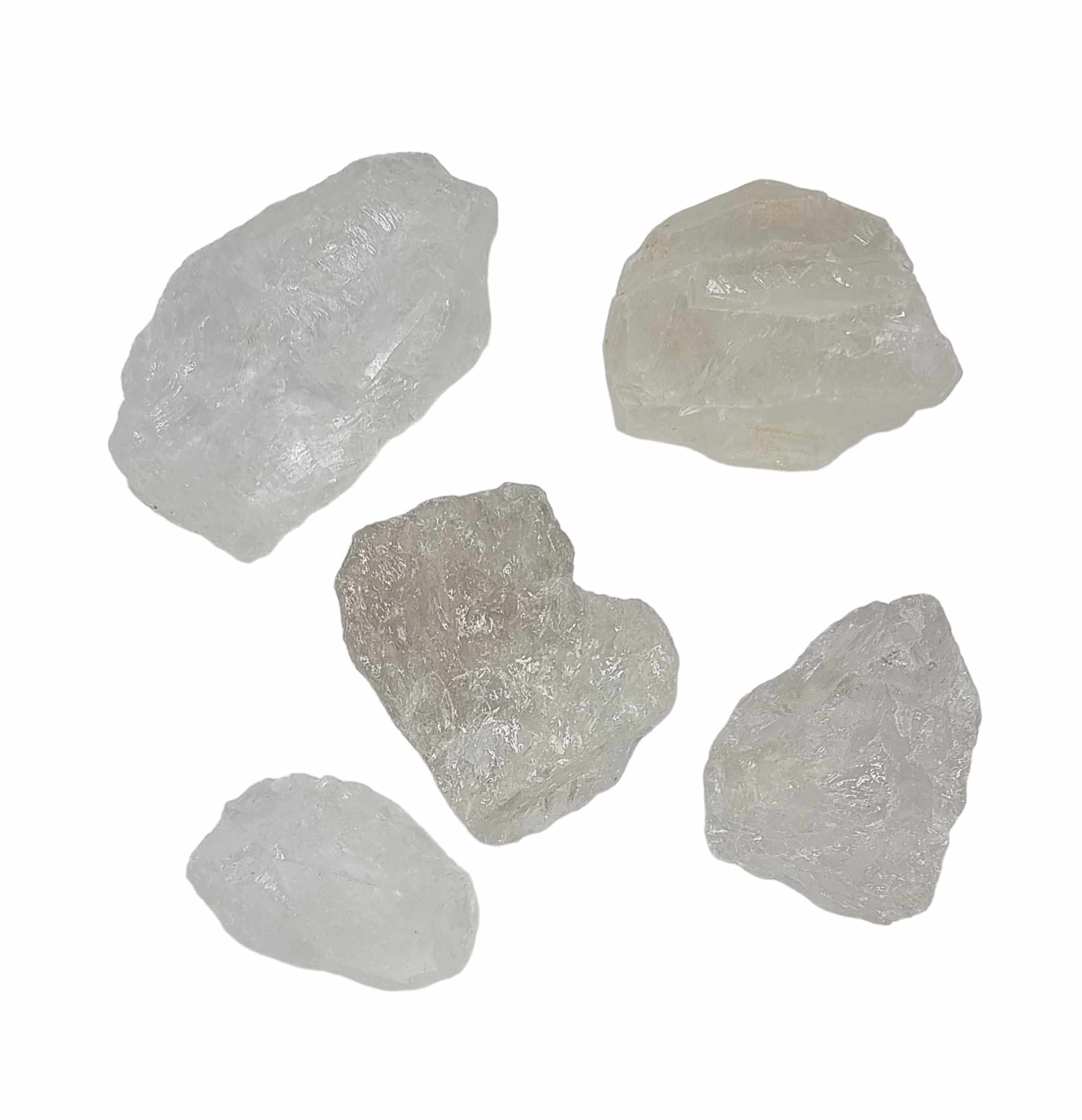 Råa bitar av Bergkristall cirka 4-6 cm. Säljes i 1 kg och 5 kg paket.